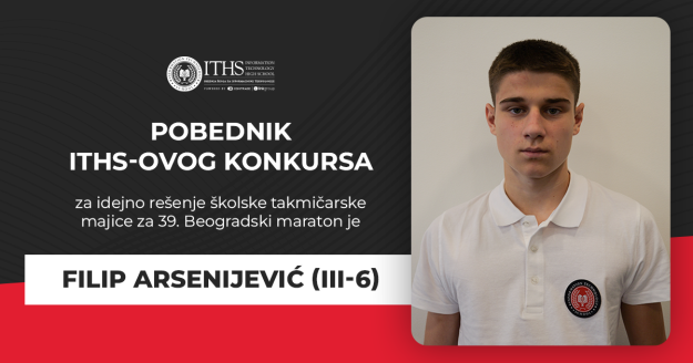 Pobednik ITHS-ovog konkursa za idejno rešenje školske takmičarske majice za 39. Beogradski maraton je Filip Arsenijević (III-6)