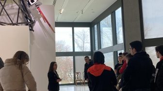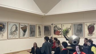 Nastavu u našoj školi čine ne samo zanimljivi časovi nego i originalne vannastavne aktivnosti. Učenici su, između ostalog, uvek u prilici da isprate najaktuelnija kulturna dešavanja, pa su tako u četvrtak, 8. decembra, posetili Muzej savremene umetnosti i izložbu Mrđana Bajića pod nazivom „Nepouzdani pripovedač”. Bila nam je posebna čast što se na kraju posete sasvim iznenada pojavio i sam umetnik, koji nam je izneo svoja tumačenja izložbe i utiske o njoj.