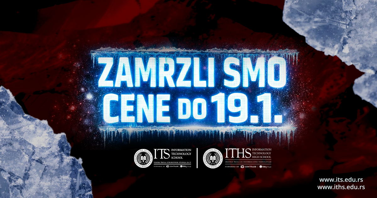 Nova godina je idealan trenutak za pametne odluke koje oblikuju budućnost. Srednja škola za informacione tehnologije (ITHS) i Visoka škola za informacione tehnologije (ITS) pripremile su posebnu novogodišnju ponudu: zamrzli smo cene do 19. januara i poklanjamo vaučer od 200 € za predupis!