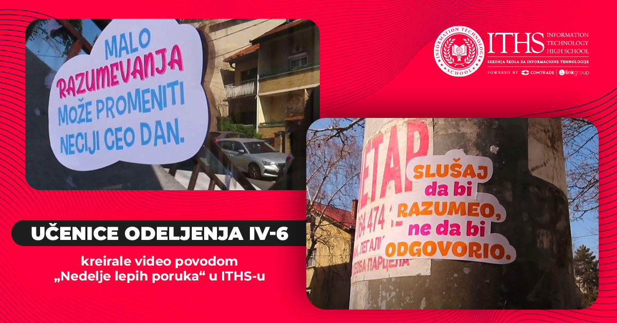 Tim povodom, učenice odeljenja IV-6, Anđela Martić i Nađa Petrić, zajedno sa svojim odeljenjskim starešinom, Marijom Ivanov, došle su na zanimljivu ideju – da kreiraju video pod nazivom „Good vibes only“. Njih dve su i glavne junakinje ovog videa, u kojem, uz pomoć stikera na kojima su ispisane poruke ljubavi, međusobne podrške i razumevanja, ukazuju na važnost ovih stavki u životu.
