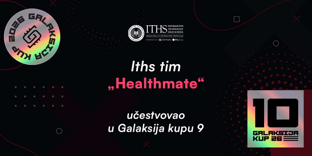 Viktor Lakčević, Milan Subotić i Andrija Elez, učenici odeljenja IV-3 čine tim „Healthmate“. Oni su odlučili da svojim znanjem pomognu medicinskim radnicima, ali i pacijentima, tako što će uz pomoć ovog programa skratiti vreme za redovno praćenje tipičnih zdravstvenih parametara kod pacijenata. Na taj način, doktor će imati uvid u izvršene analize svih svojih pacijenata, a pacijent će moći da ima elektronski pristup svim svojim rezultatima. Zaista smo neizmerno srećni što imamo tako darovite i plemenite učenike! Čestitamo im na učešću u Galaksija kupu 9! Mentori tima bili su profesorka Andrijana Vasić i profesor Nikola Dragović